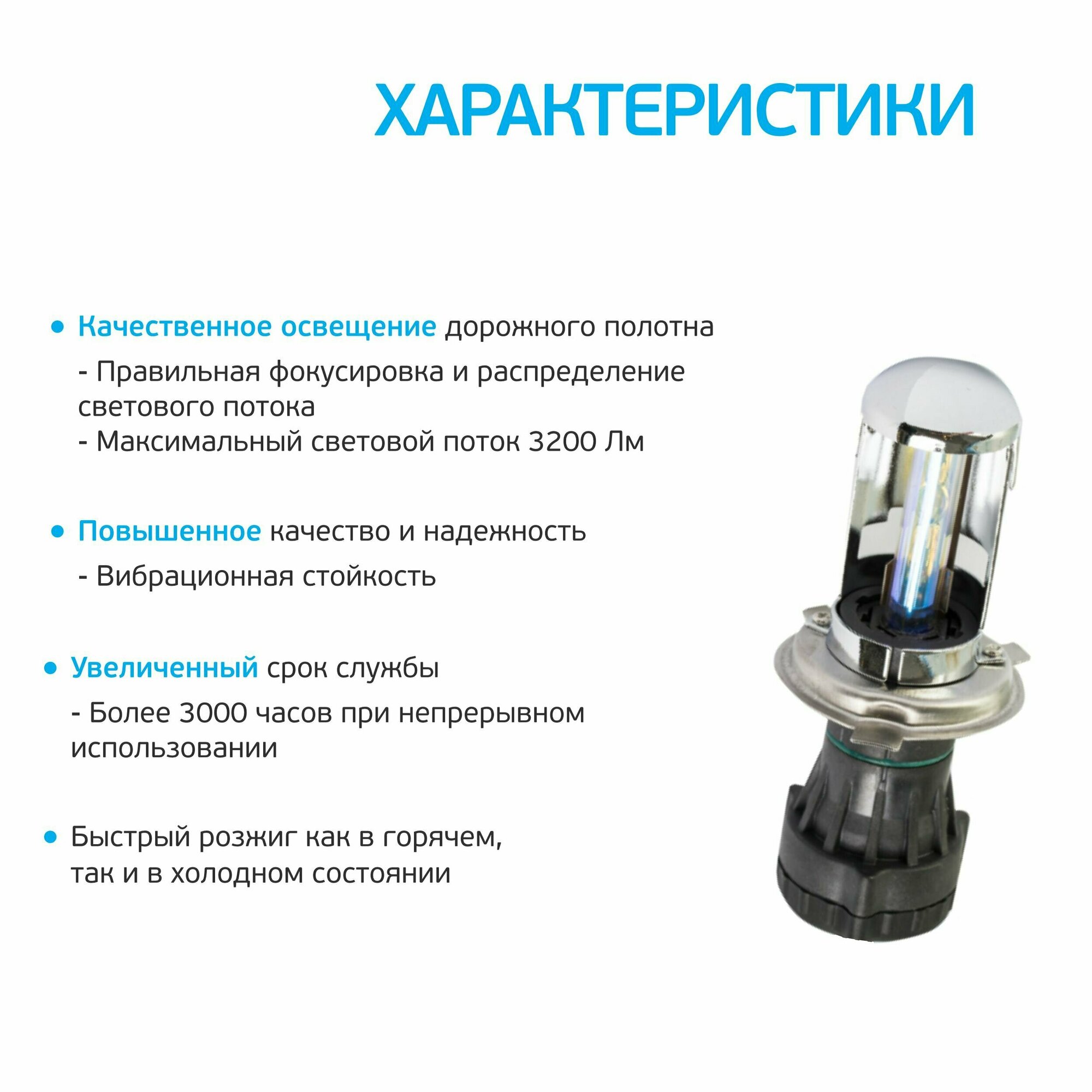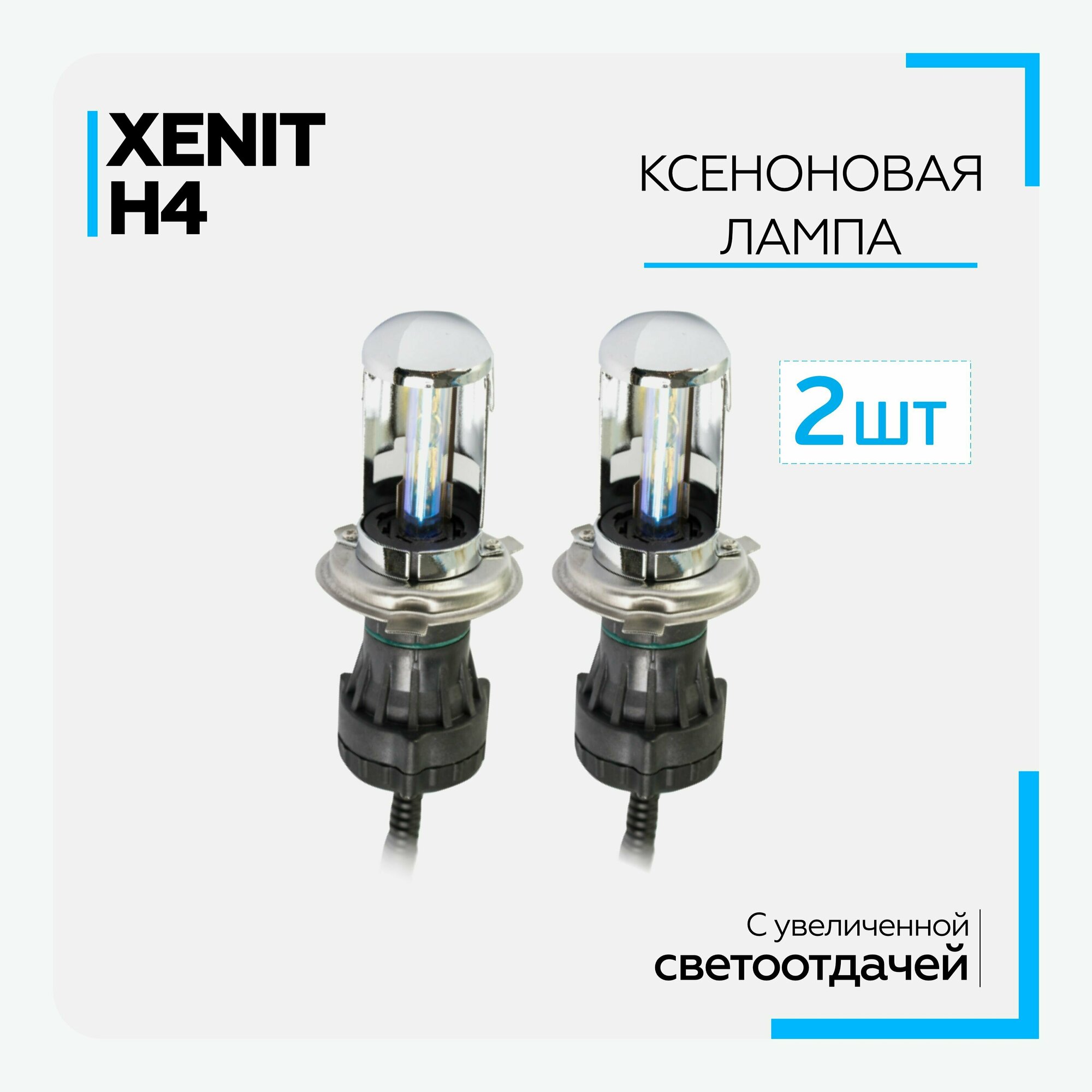 Ксеноновая лампа Xenite H4 H/L Extra Vision (Яркость +30%) комплект 2шт, (6000К) Гарантия 1год
