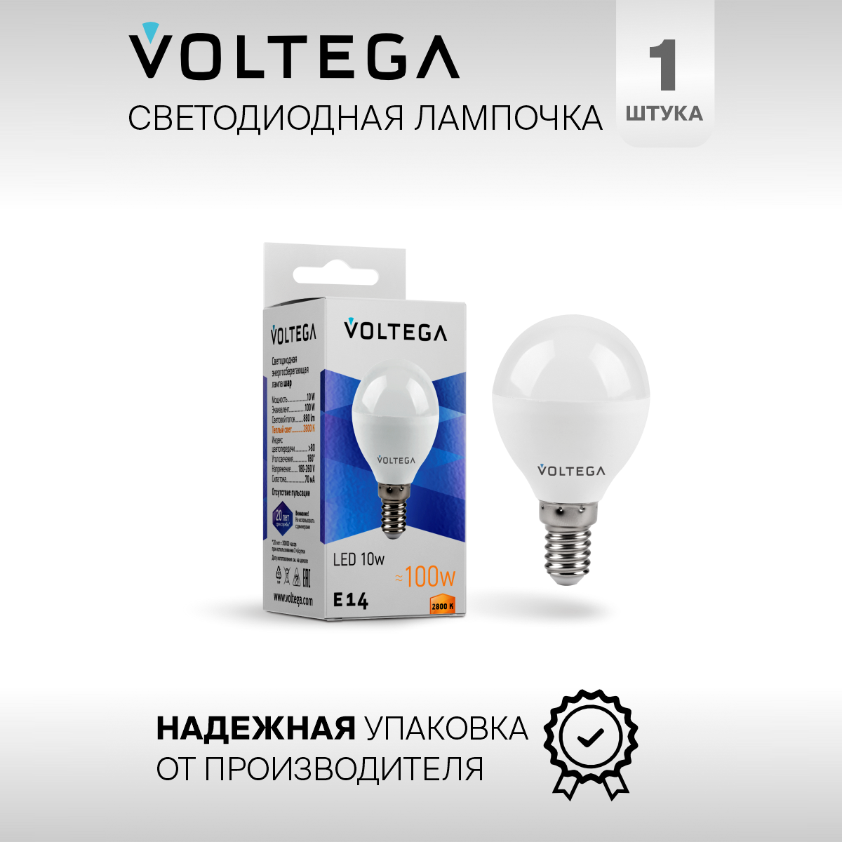 Отзывы на Лампочка светодиодная E14 форма шар 10W теплый свет Voltega Simple Globe 2800K 1 штука