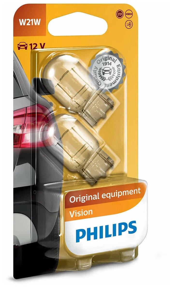 Лампа автомобильная Philips Vision, W21W, 12 В, 21 Вт, набор 2 шт, 12065B2
