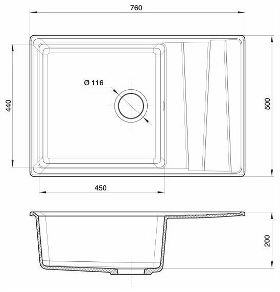 Кухонная мойка, раковина, Ника 570, искусственный камень, графит