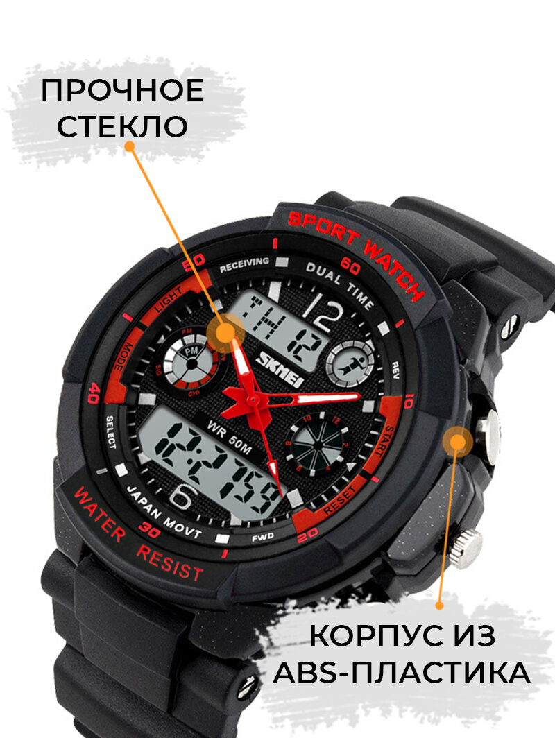 Отзывы на Часы наручные детские электронные SKMEI водонепроницаемые, с будильником и секундомером, красные