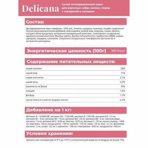 DELICANA для собак мелких пород (говядина с овощами) (упаковка: 1,5 кг., вес: 1.5) информация: