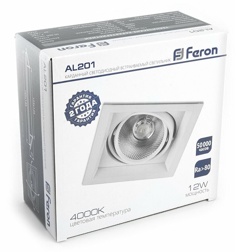 Отзывы на Светодиодный светильник Feron AL201 карданный 1x12W 4000K 35 градусов ,белый fr_29773