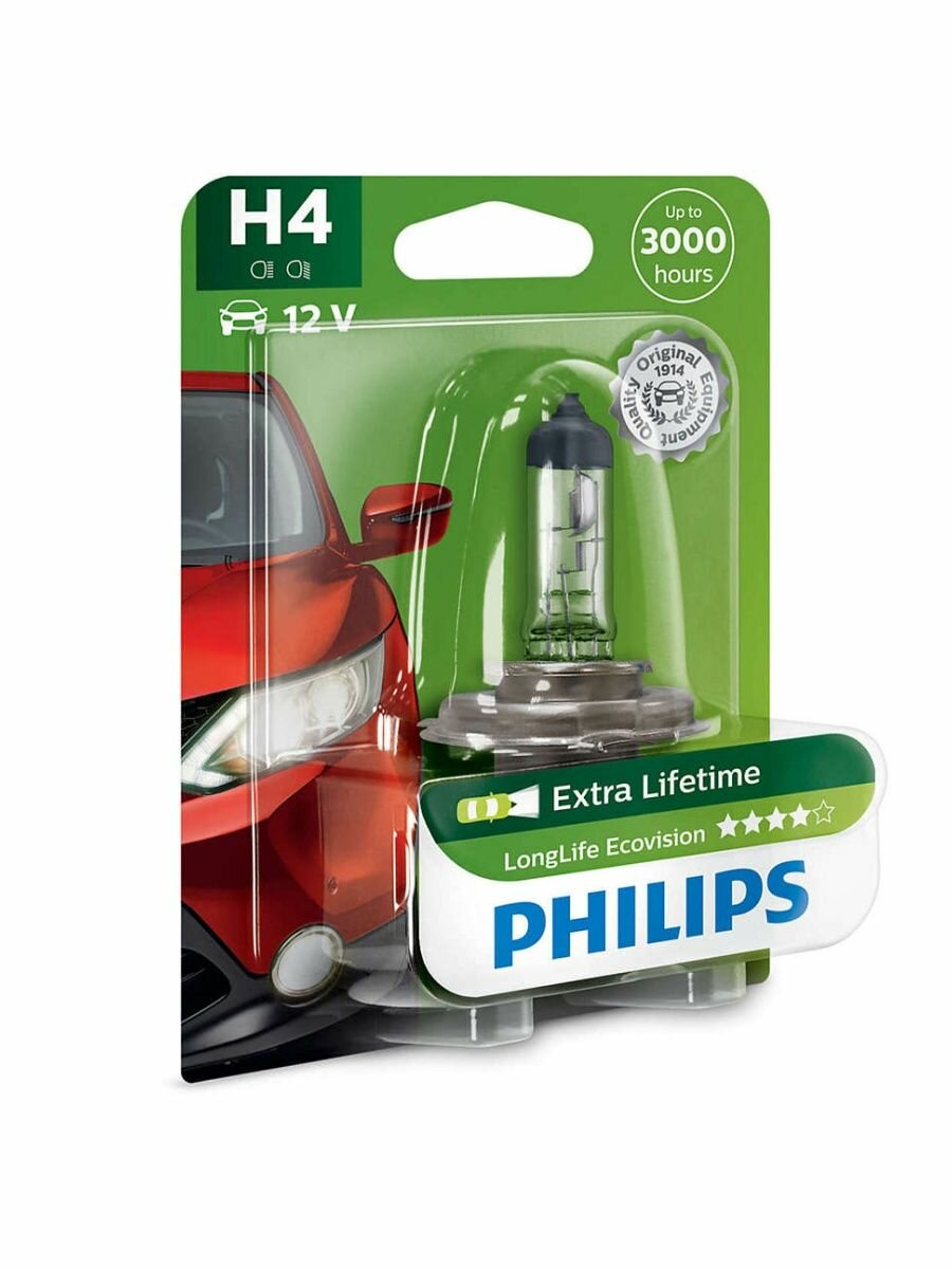 10 цен на Галогенная лампа Philips H4 Long EcoVision 1шт 12342LLECOB1