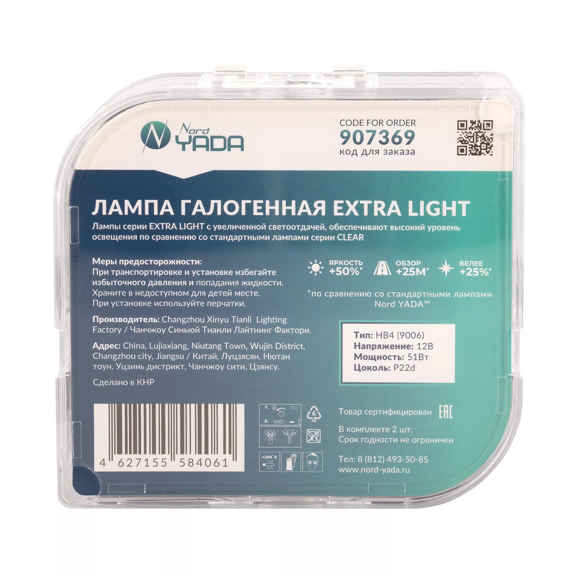 Лампа галогенная HB4 12V 51W "Nord YADA" Extra Light +50% (2 шт.) (Plastic case) NORD YADA 907369 | цена за 1 шт