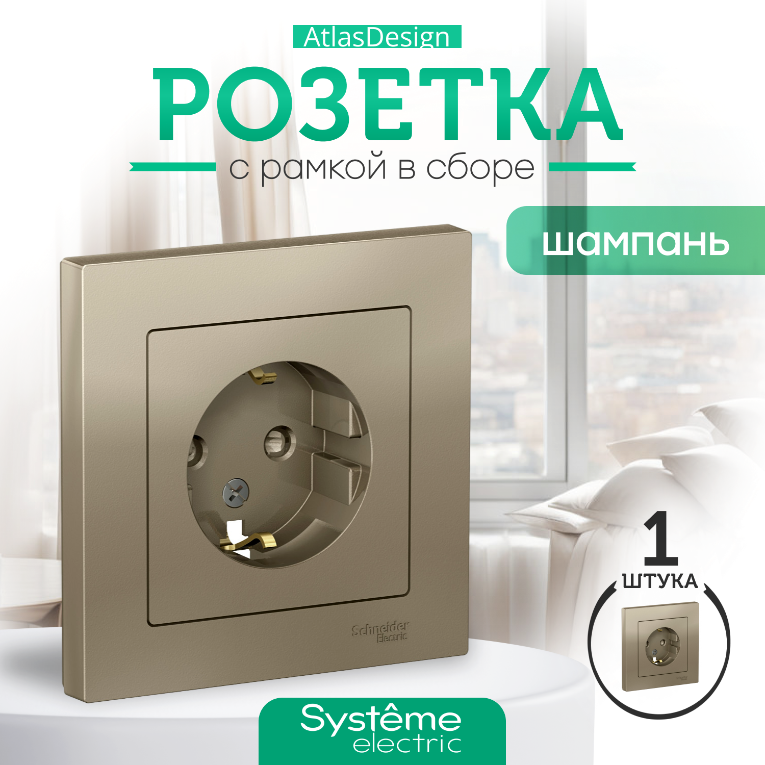 Отзывы на SE AtlasDesign Шампань Розетка с/з со шторками, 16А, в сборе ATN000544