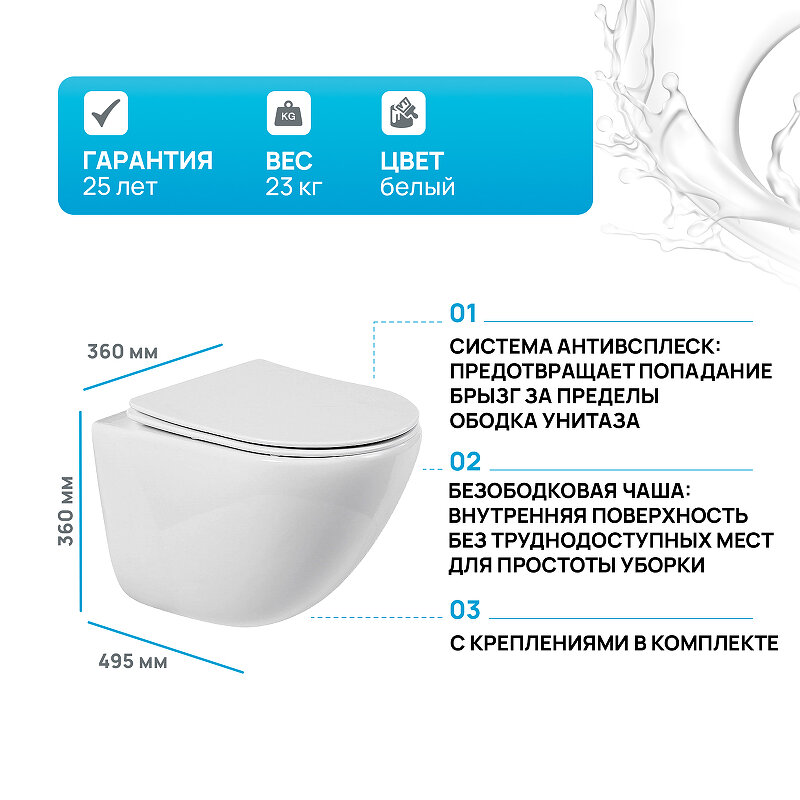 Чаша унитаза подвесного безободкового с креплением AMANDA