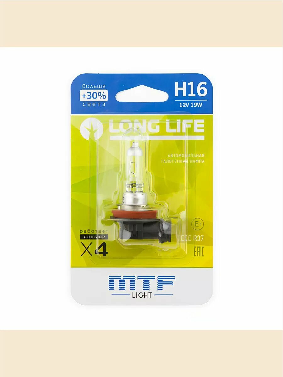 10 цен на Галогенная лампа H16, 12V, 19W, +30% LONG LIFE x4, 1шт.