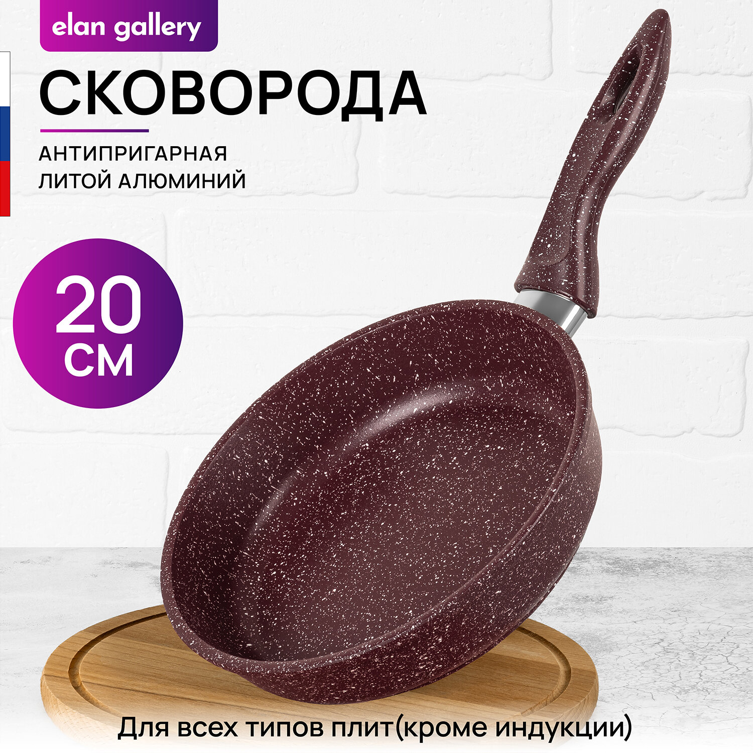 Отзывы на Сковорода глубокая Elan Gallery гармония вкуса Рубин, с несъёмной ручкой, 20 см (120755)