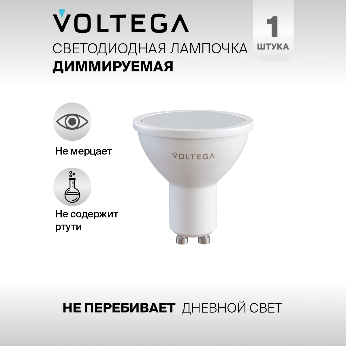 Отзывы на Лампочка светодиодная GU10 форма софит 6W нейтральный белый Voltega Simple MR16 4000K 1 штука диммируемая
