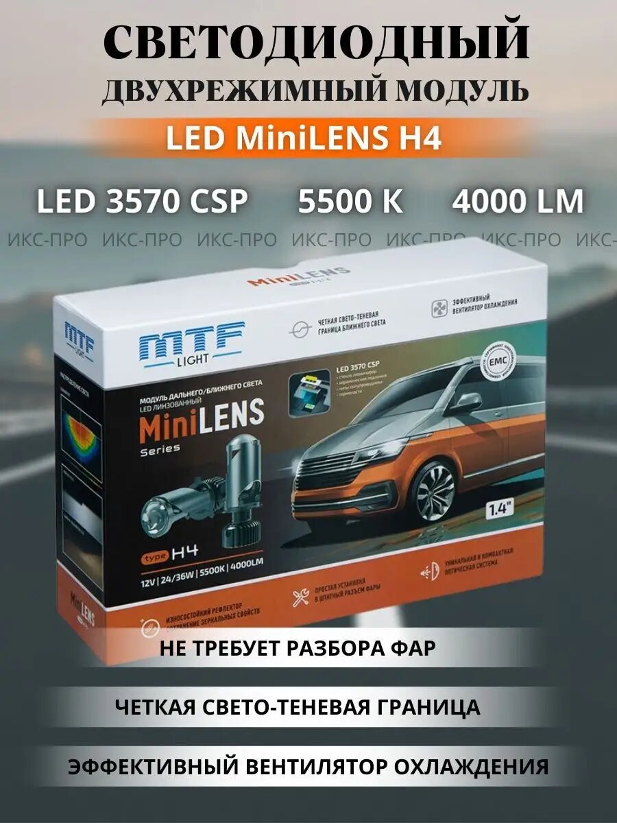 10 цен на Светодиодные линзы MTF LIGHT серии MINILENS H4, 12V, 24/36W, 5500K, 4000lm, комплект.