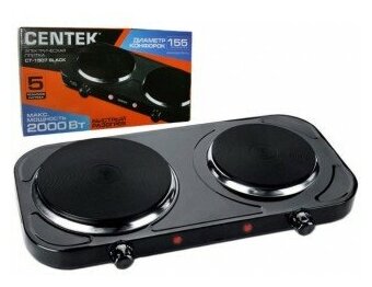 Плитка Электр. Centek Ct-1507, 2000Вт, 2 Комф., Чугун, Чёрная CENTEK арт. CT1507
