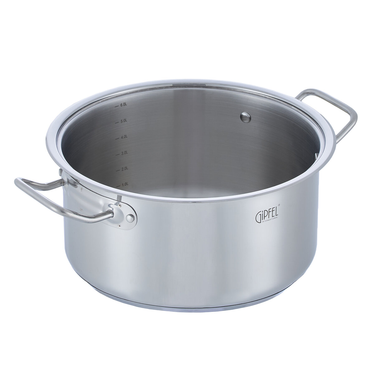Белая калитва Кастрюля, 6 л, полусферическая, металлическая крышка, цвет хромированный
