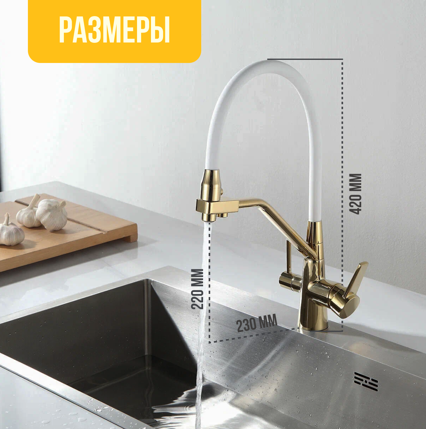 Смеситель для кухни Frap F4398-3 с подключением фильтра, , белый/золото