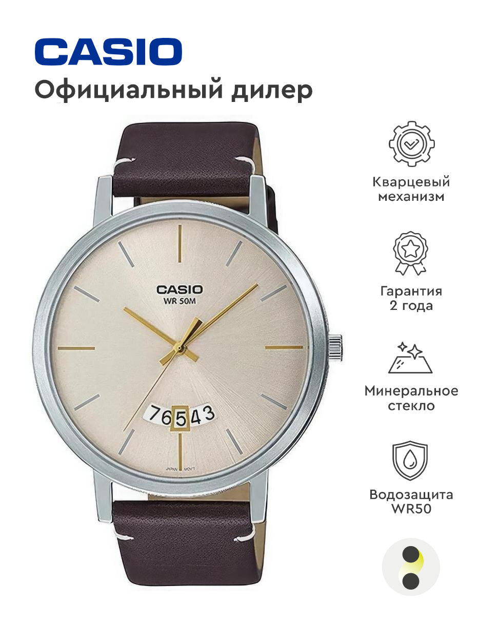 MTP-B100L-2E Casio наручные часы кварцевые WR50 (5 атм) мужские хром, коричневый отображение числа минеральное стекло