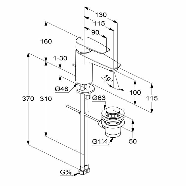 Смеситель Kludi Pure&Solid 342900575 для раковины с донным клапаном информация: