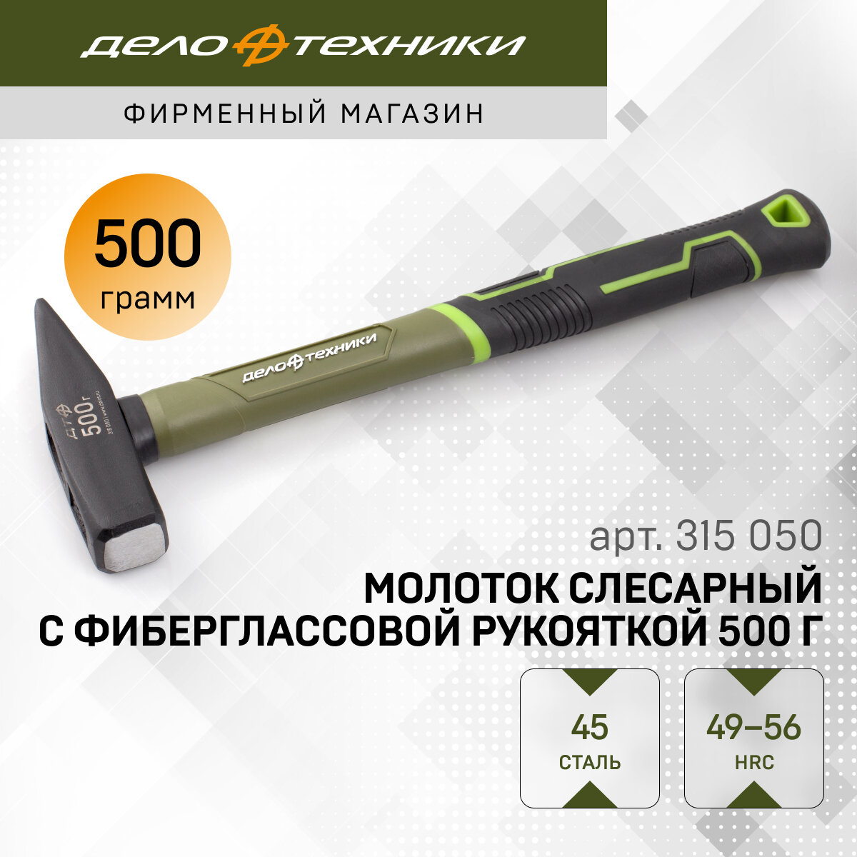 Молоток Дело Техники слесарный с фибергласcовой рукояткой 500 г, 315050 информация: