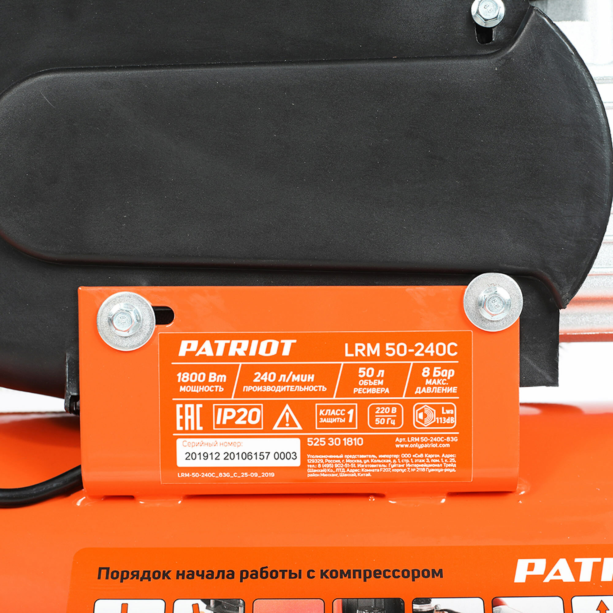 Компрессор поршневой масляный Patriot LRM 50/1.8C, 50 л 240 л/мин информация: