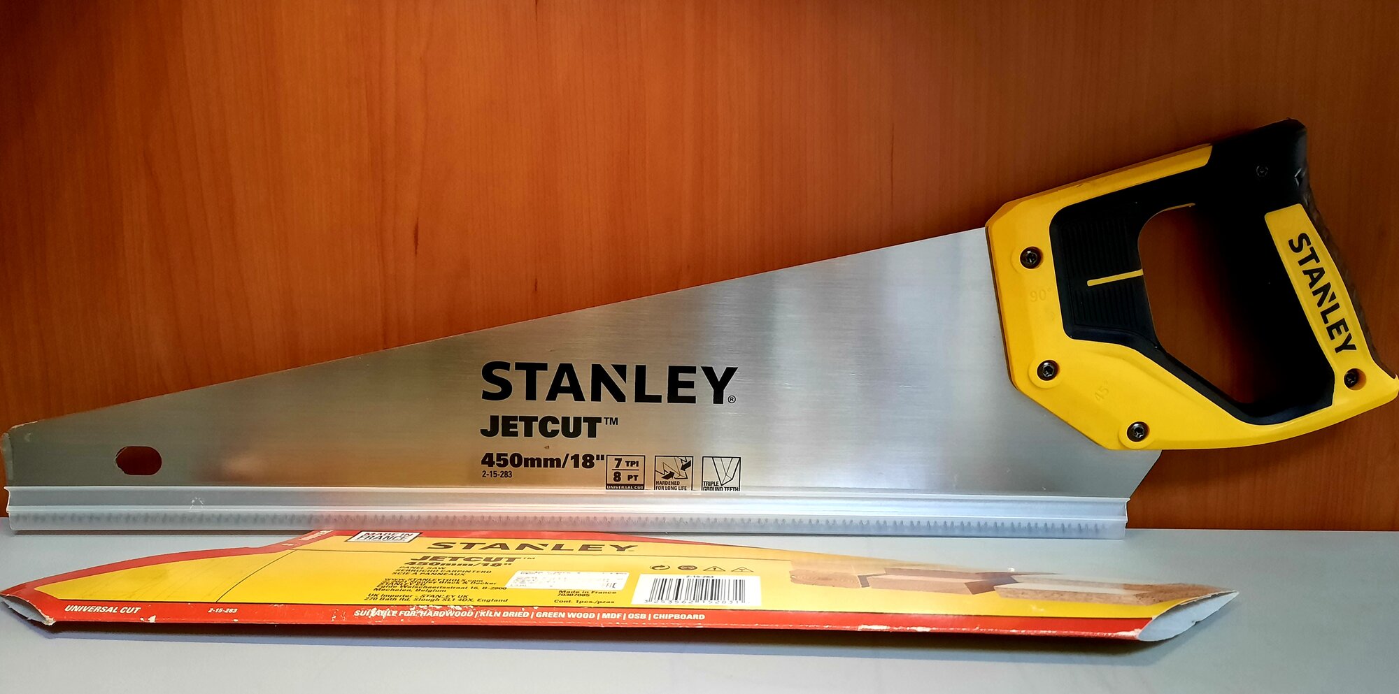 Ножовка по дереву Stanley Jet-cut 215283 (длина лезвия 450 мм, зуб 7 TPI, прорезиненная рукоятка, вес 0.43 кг)