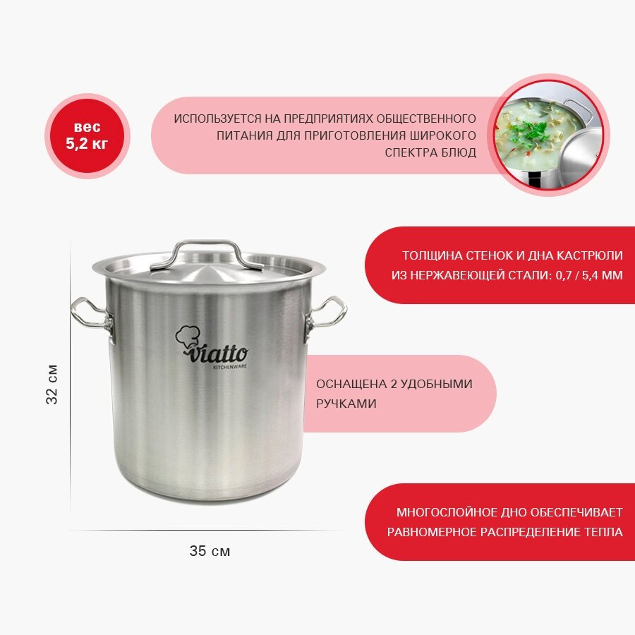 Кастрюля Viatto нержавеющая сталь с тройным дном 350x320 мм объем 30 л с двумя ручками 101331 62072 информация: