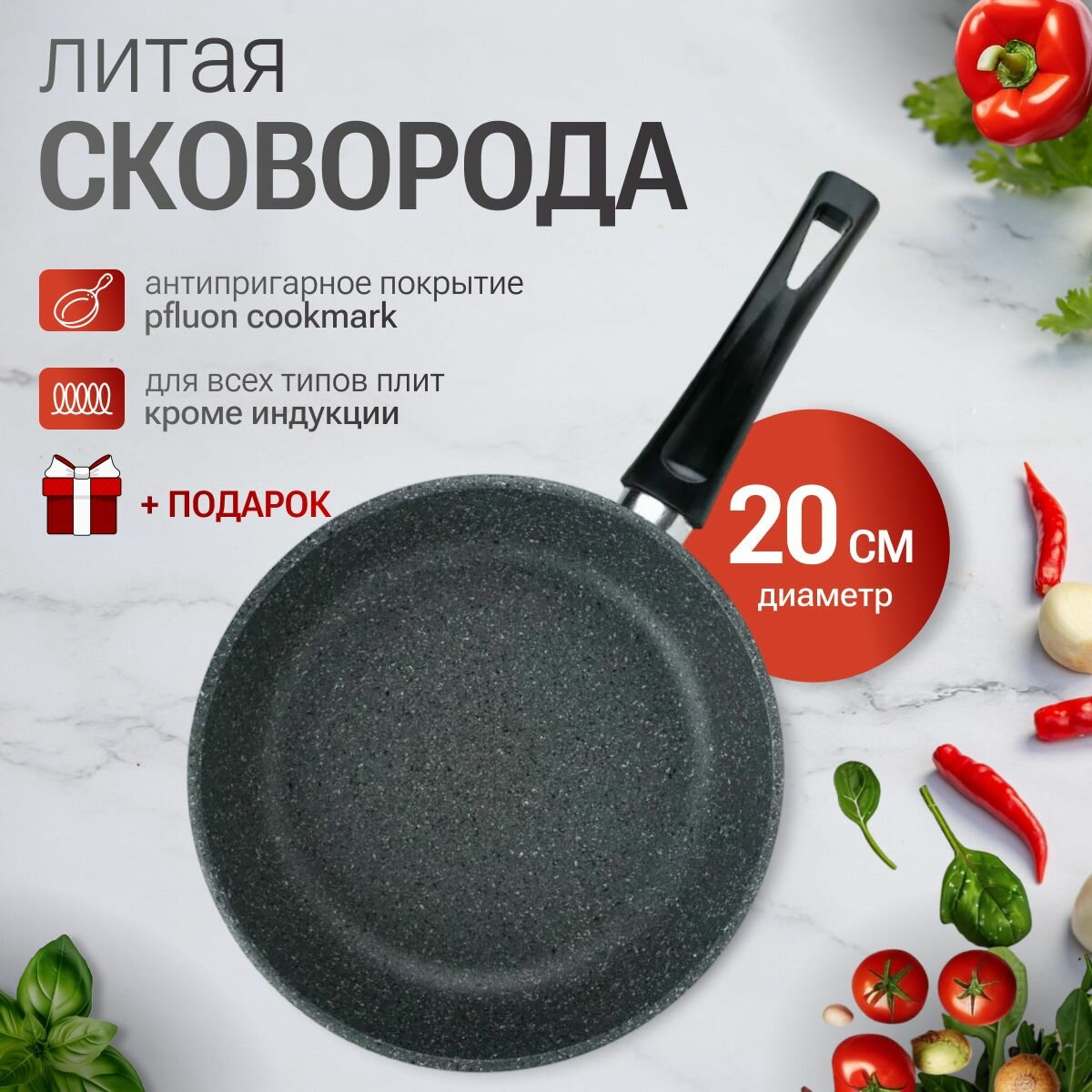 10 цен на Сковорода с антипригарным покрытием 20 см цвет серый гранит