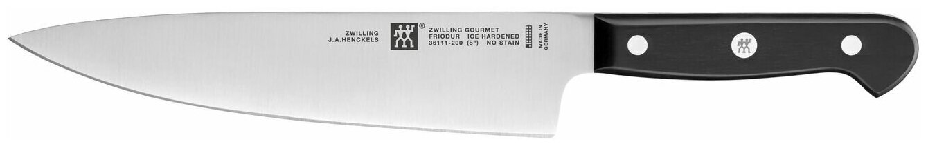 | Комплектация | Нож для овощей ZWILLING Gourmet, 100 мм; Нож для нарезки ZWILLING Gourmet, 160 мм; Нож поварской ZWILLING Gourmet, 200 мм |