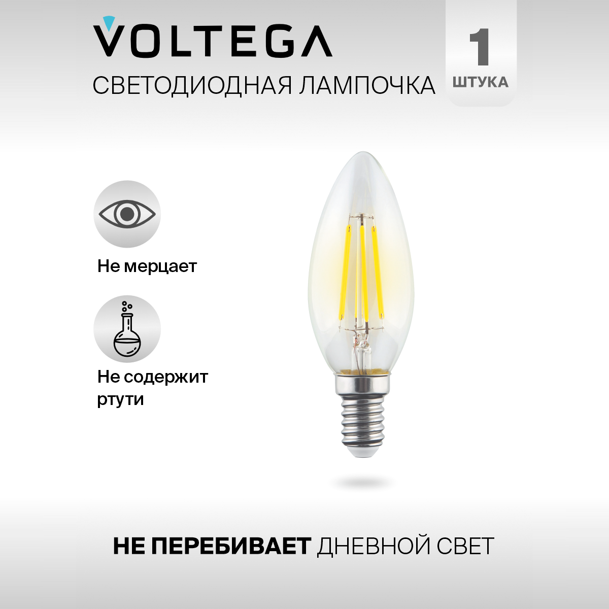 Отзывы на Лампочка светодиодная E14 форма свеча 6W теплый свет Voltega Crystal Candle 2800K 1 штука