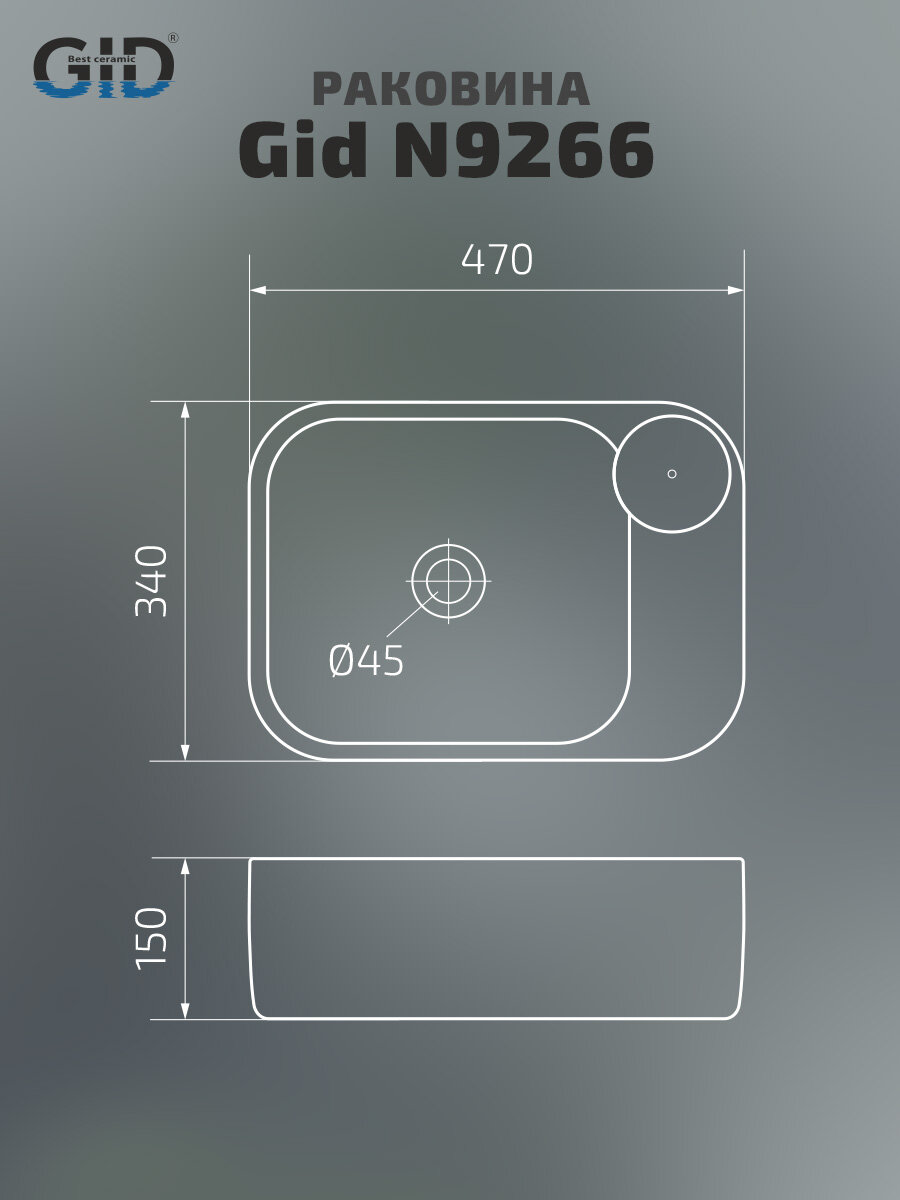 (47х34х15см) Керамическая накладная раковина с встроенным переливом Gid N9266 информация: