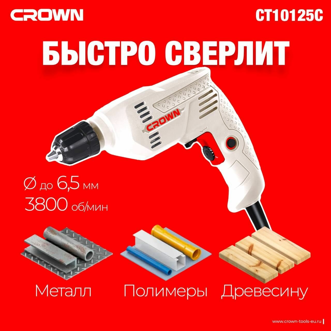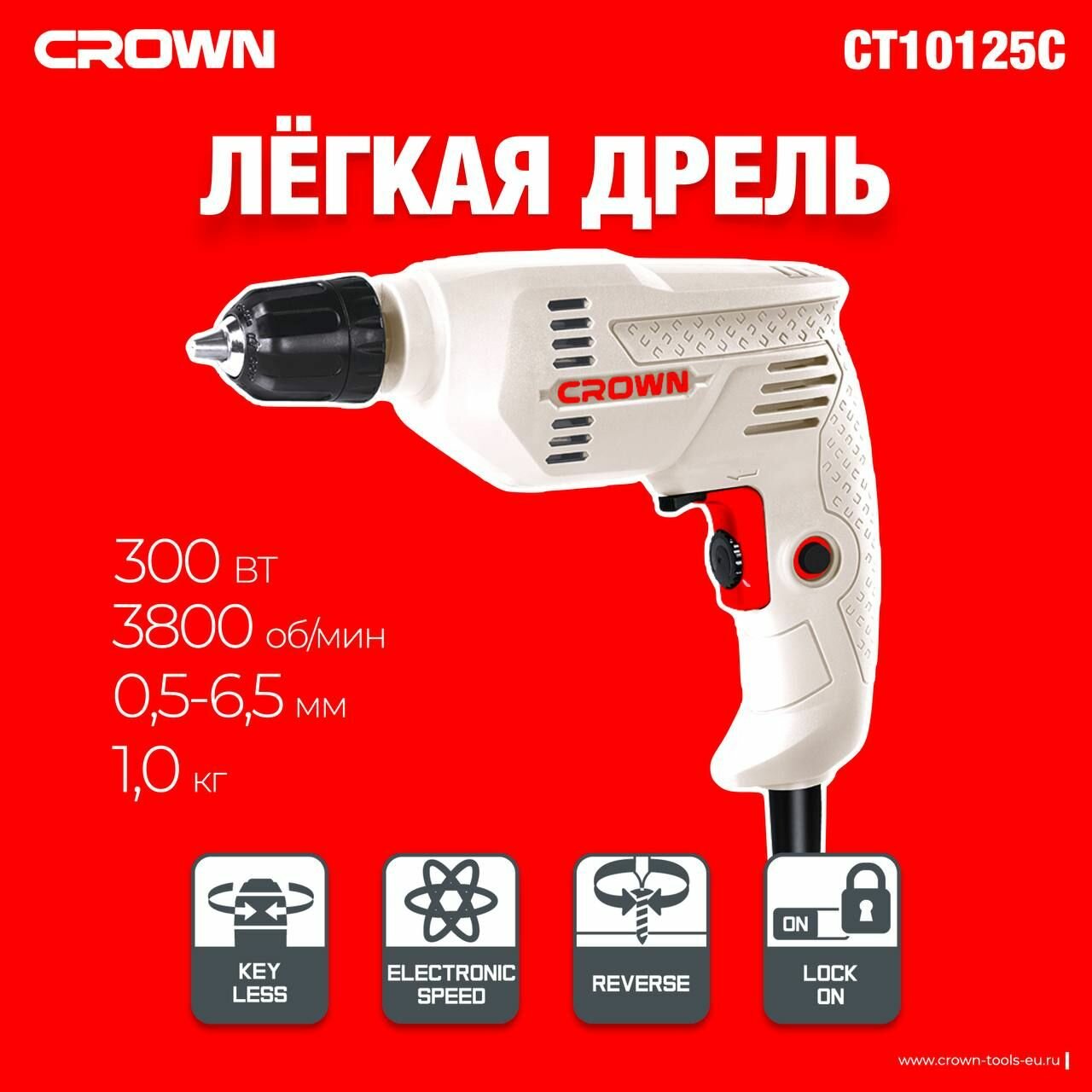 Дрель электрическая CROWN CT10125C 300Вт, патрона 0,8-6 мм