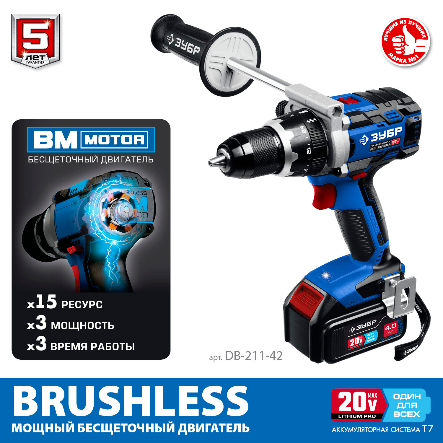 Дрель-шуруповерт аккумуляторная ЗУБР DB-211-42 Т7 2 АКБ (4 А·ч), бесщеточная кейс, Профессионал информация: