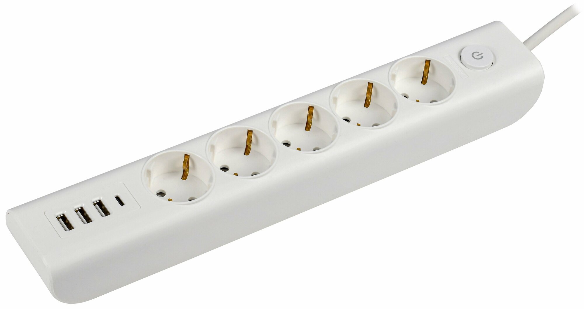 MODERN Удлинитель бытовой с выключателем 2 метра, 5 розеток, 3хUSB-A + USB-C, 16А, белый IEK информация: