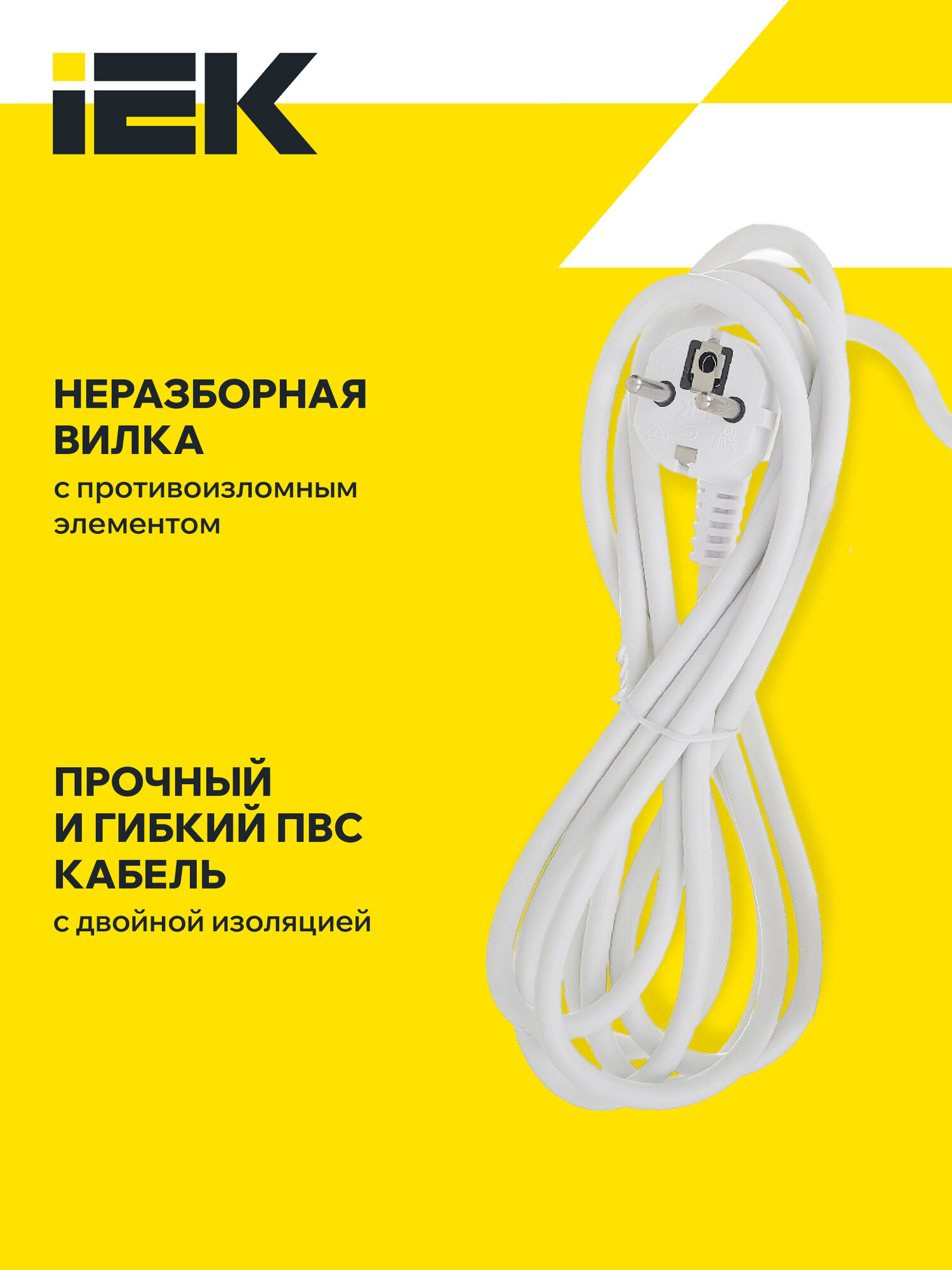 Удлинитель IEK У05, ПВС 3 x 1 мм², с заземлением, 5 розеток, 5 м, белый 1 608 ₽