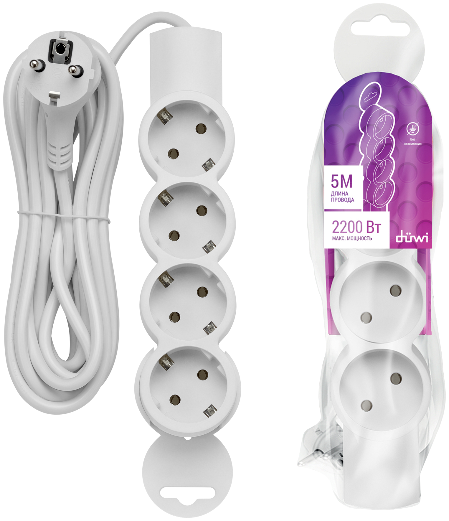 Удлинитель Duwi 4 гнезда без выключателя с заземлением 5м 2200Вт 10А 32013 7