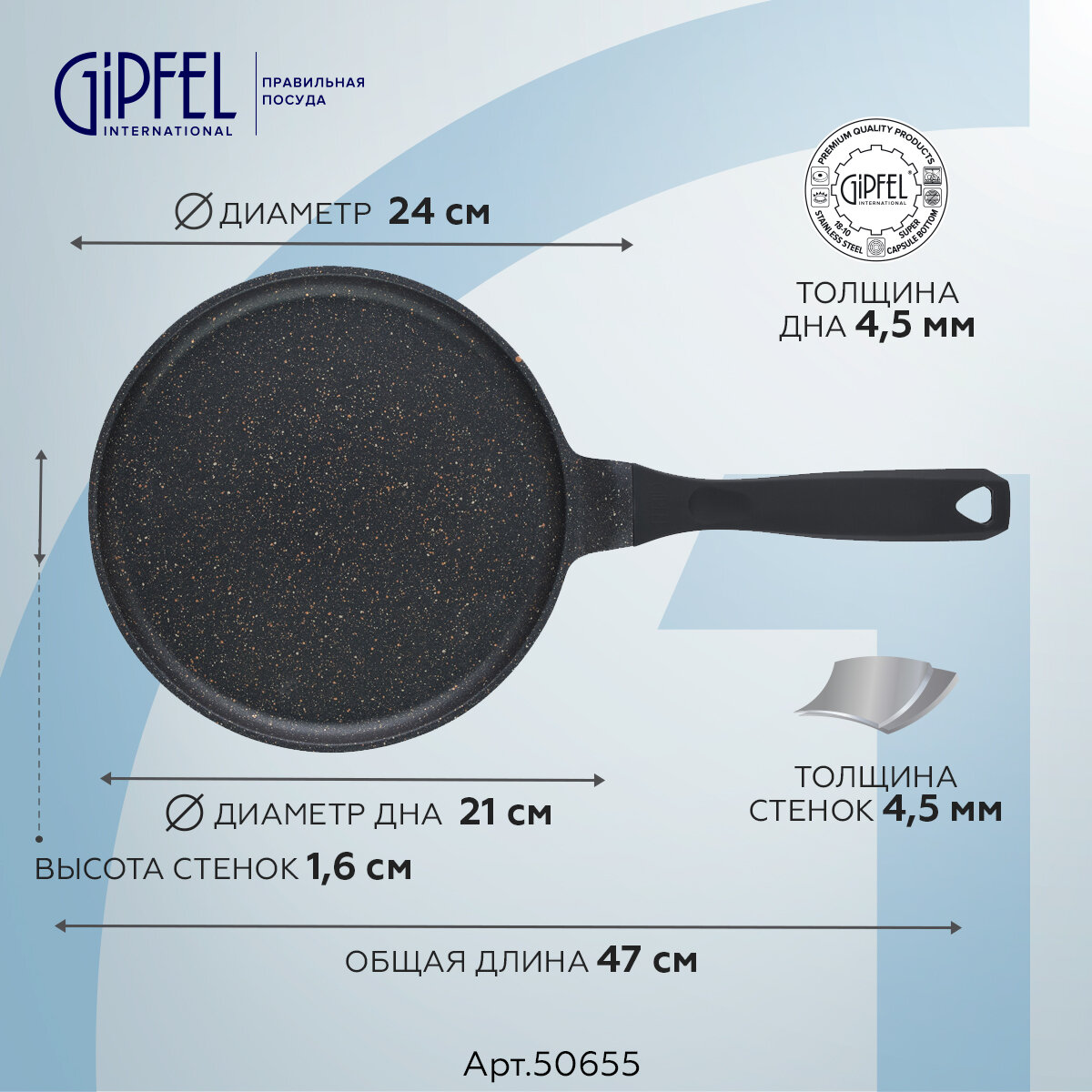 Сковорода блинная Gipfel Explosion 50655 24 см информация: