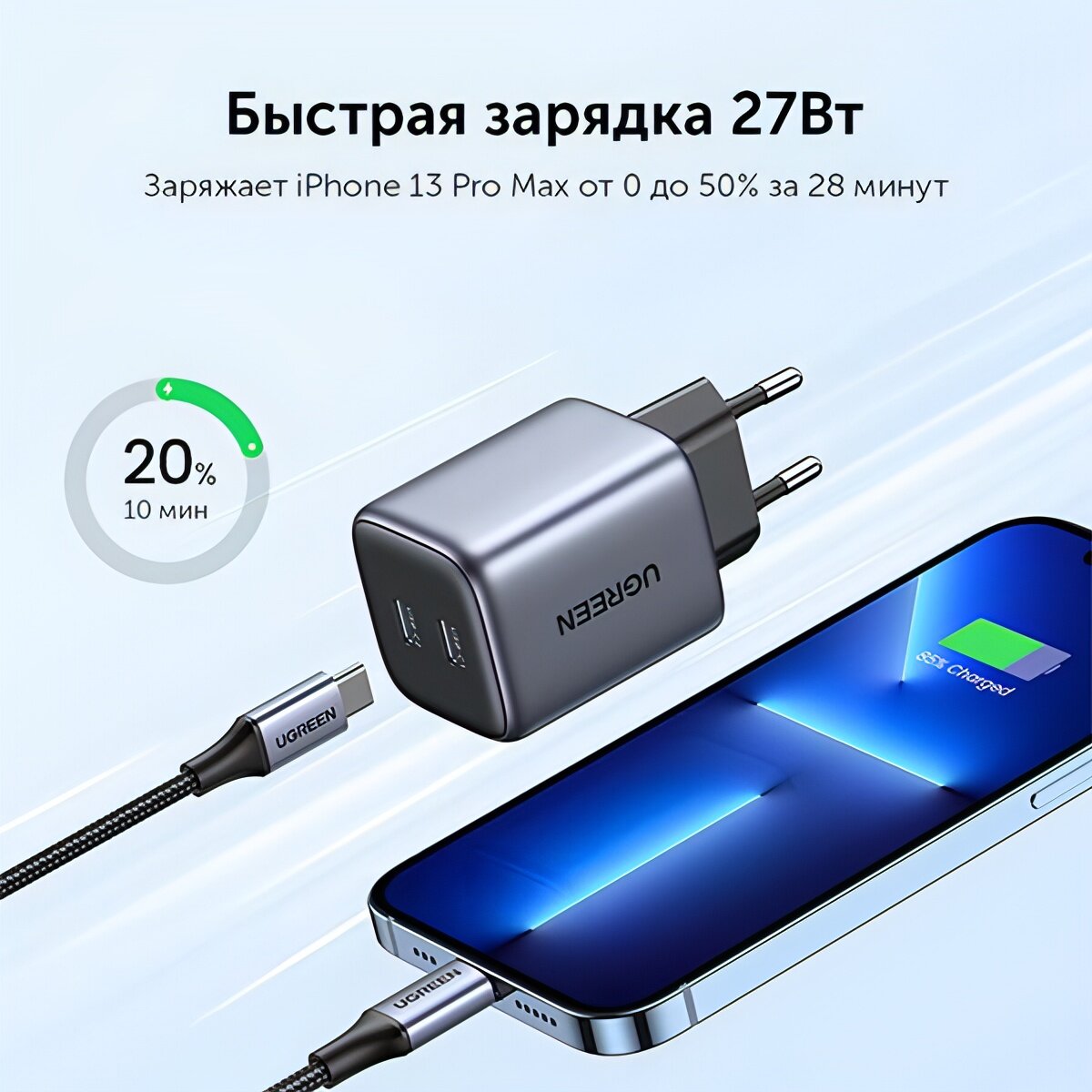 10 цен на Сетевое зарядное устройство Ugreen CD294 (90573) 2хUSB-C, 45 Вт, серый