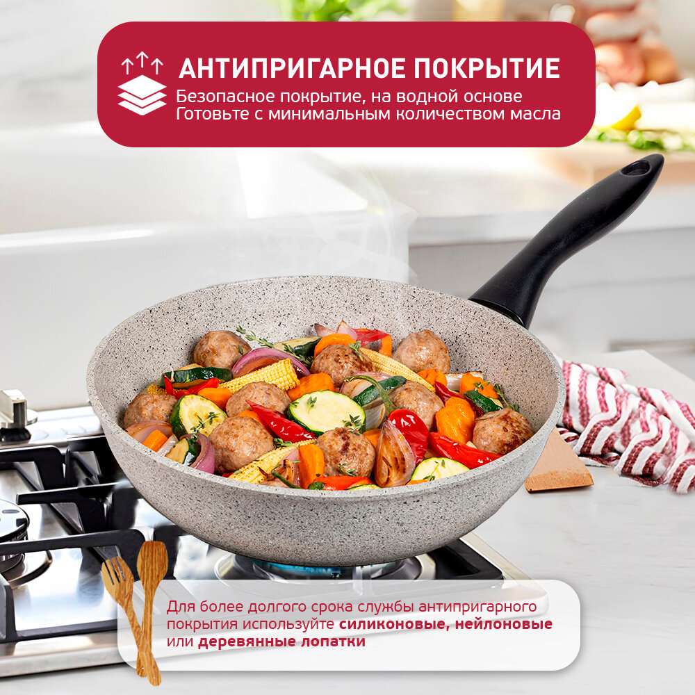 Сковорода литая "Классическая каменная" белая, 26 см, с антипригарным покрытием информация: