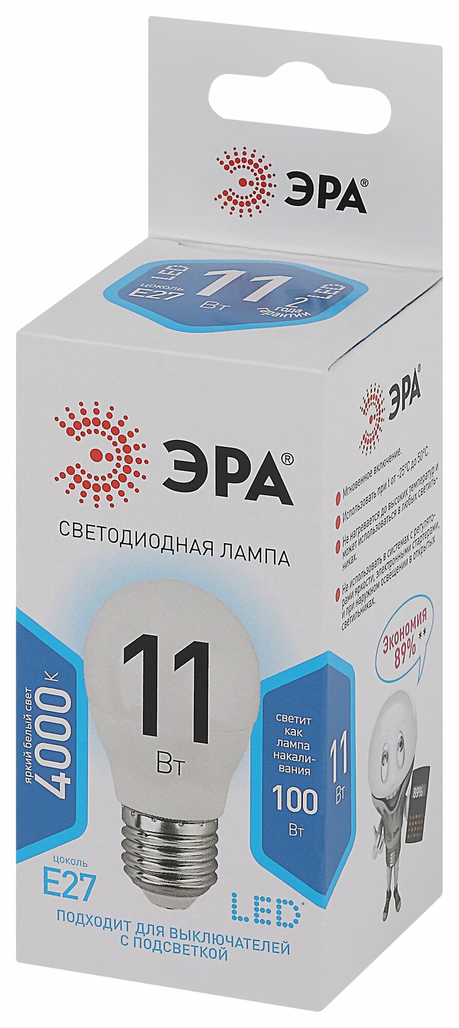 Лампочка светодиодная ЭРА LED P45-11W-840-E27 4000K шарик 11 Вт информация: