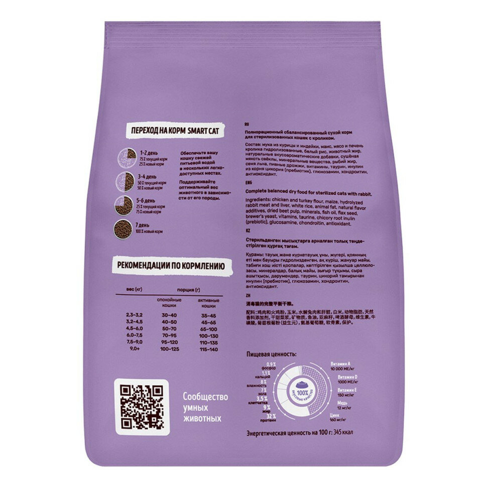 Smart Cat сухой корм New! Для стерилизованных кошек с кроликом 56223 0,4 кг 56223 (1 шт) 468 ₽