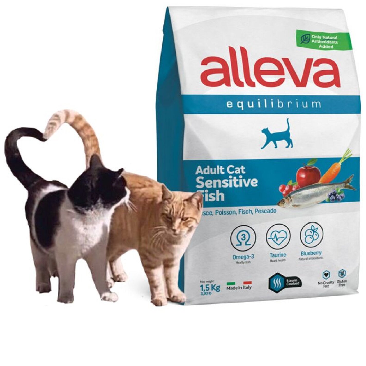ALLEVA Полнорационный корм SENSITIVE для взрослых кошек с рыбой. 1,5 кг.