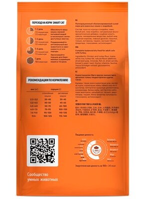 Smart Cat (Смарт Кэт) сухой корм для взрослых кошек с индейкой, 5кг информация: