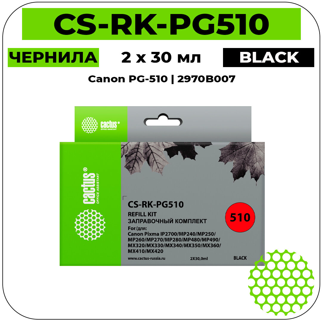 Cactus CS-RK-PG510 чернила (Canon PG-510 - 2970B007) черный 2 x 30 мл (совместимый) информация: