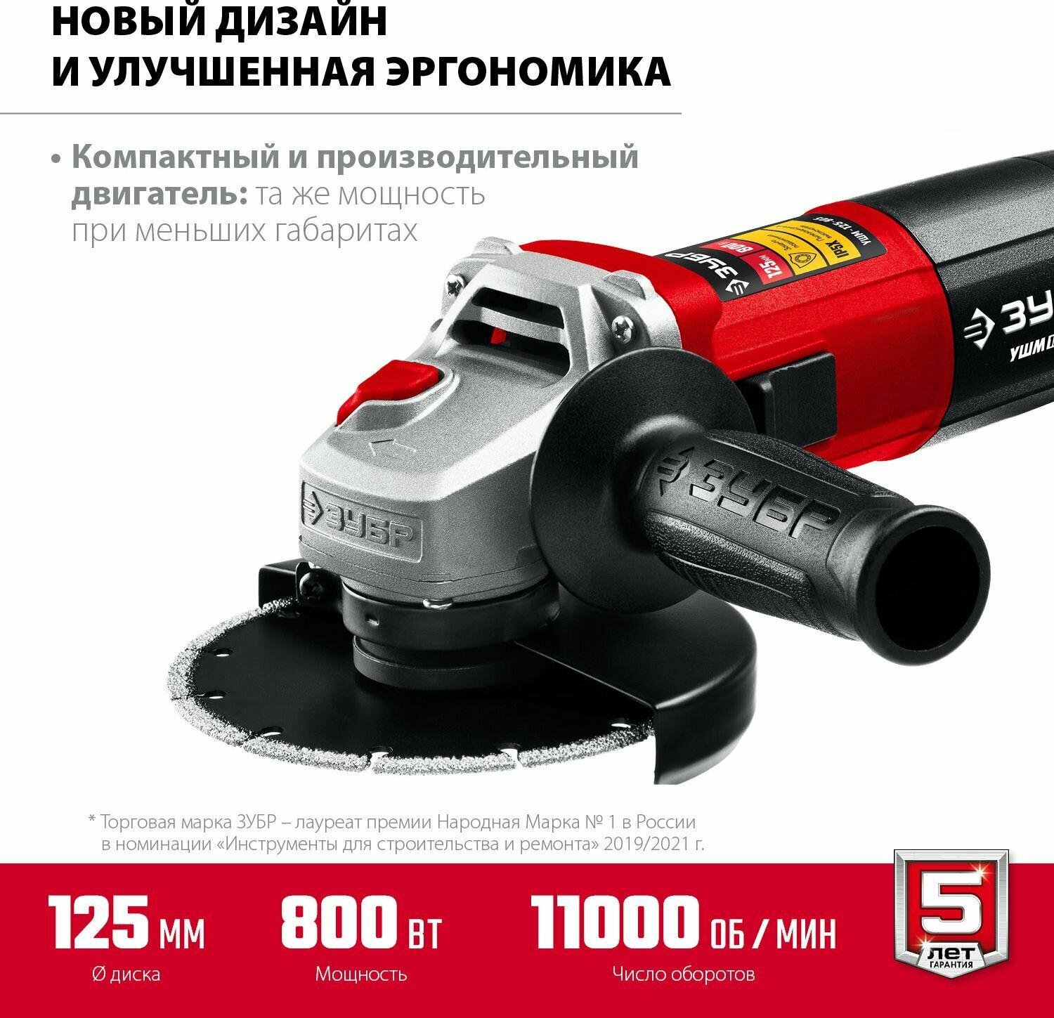 ЗУБР Компакт, 800 Вт, d125 мм, УШМ (УШМ-125-805)