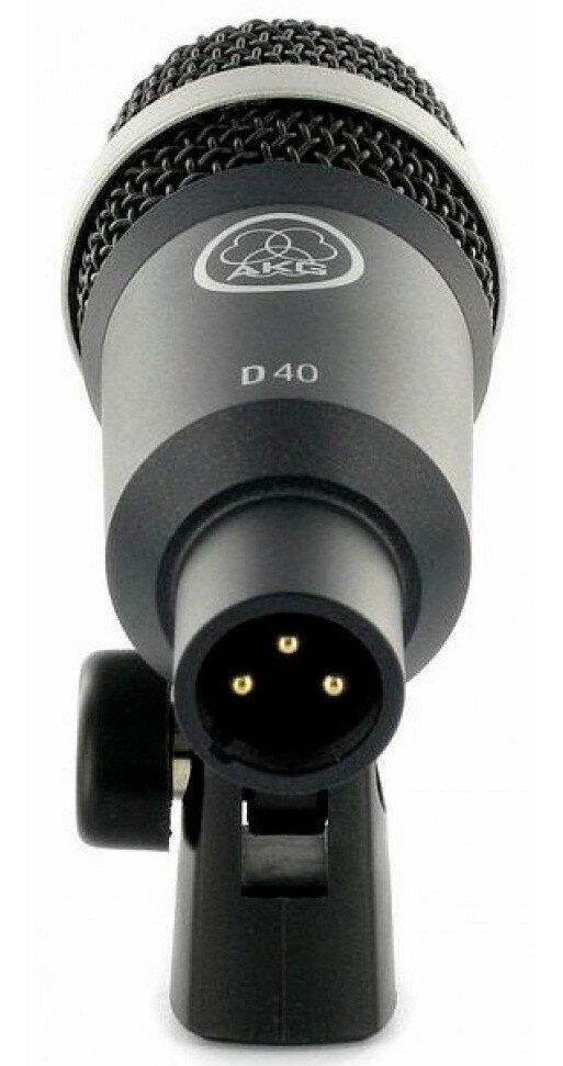 AKG D40 микрофон для духовых, барабанов, перкуссии и гитарных комбо динамический кардиоидный, разъём XLR, частотный диапазон 50-20000Гц, чувствительность 2,5мВ/Па, импеданс 200Ом, рекомендованная нагрузка 2000Ом, в комплекте чехол и адаптер H440, цвет тё