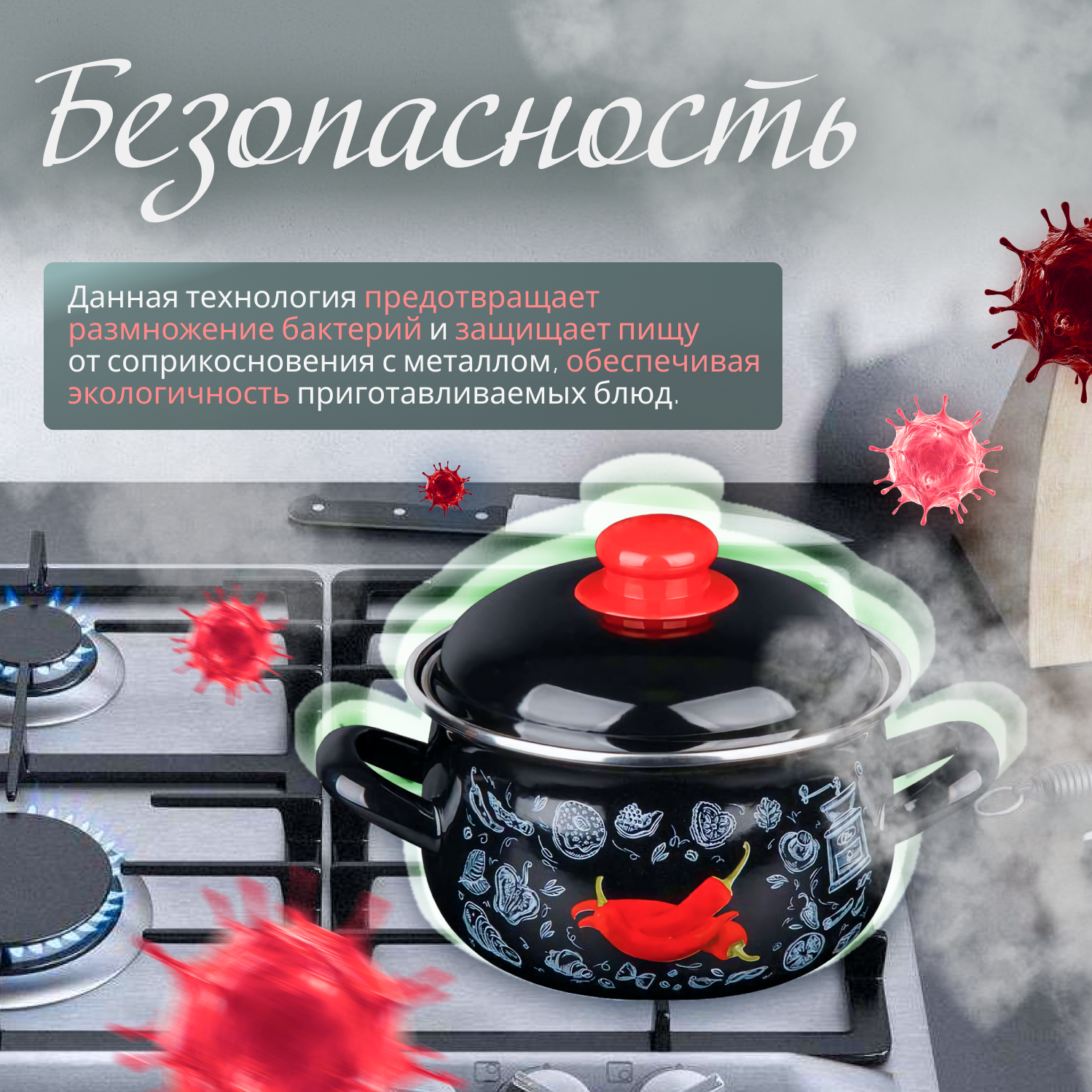 Кастрюля эмалированная стальная с крышкой 2,8 л PERFECTO LINEA Перчик (50-367828) информация: