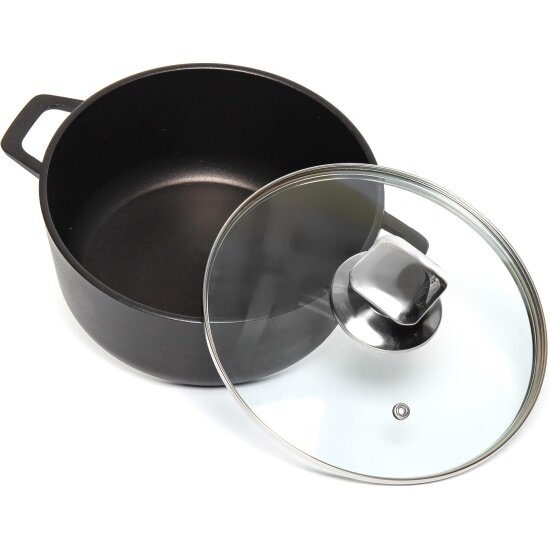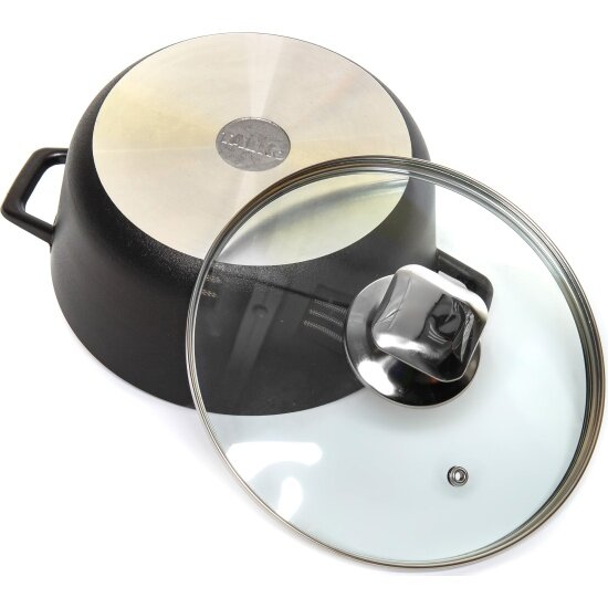 Кастрюля Маруся 7001-26к с индукционным дном со стеклянной крышкой, 5,5 л, цвет черный