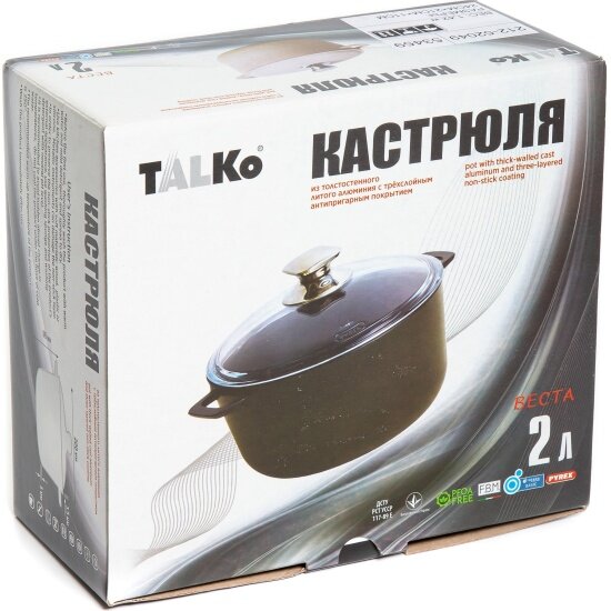 10 цен на Кастрюля Talko антиприграрная с крышкой 2л (212-52049)