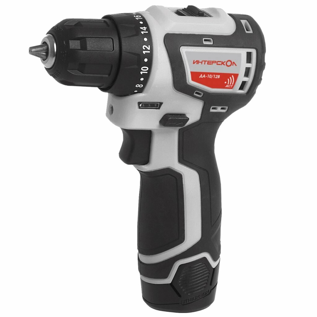 10 цен на Дрель-шуруповерт аккумуляторный, Интерскол, ДА-10/12В, бесщеточный, 12 В, кейс, 687.2.2.73