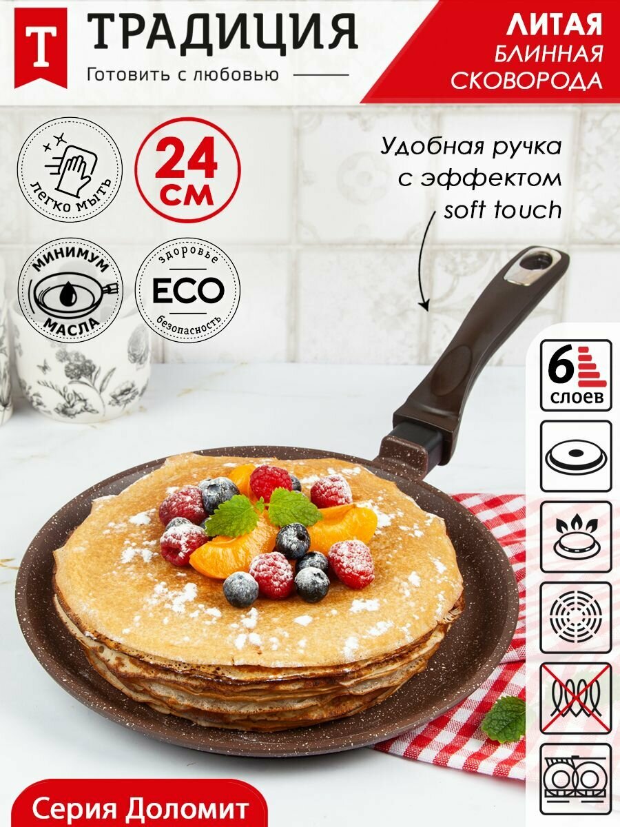 Блинница антипригарная литая 24 см Доломит ТМ Традиция готовить с любовью информация: