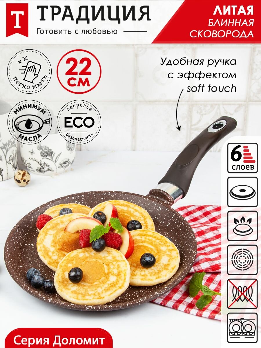 Сковорода для блинов литая 22 см Доломит ТМ Традиция готовить с любовью информация: