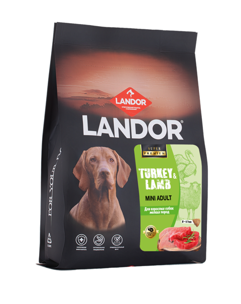 LANDOR MINI ADULT для взрослых собак маленьких пород с индейкой и ягненком NEW 1 кг
